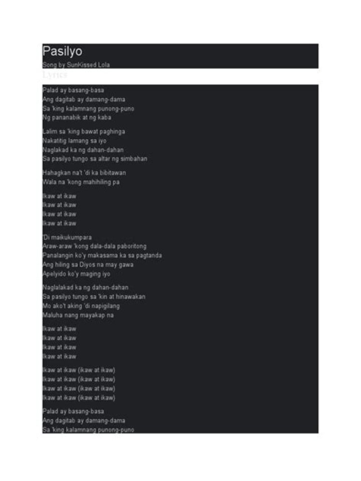 In conclusion, the pasilyo lyrics encapsulate a range of emotions and experiences that resonate deeply with listeners. The artistry of Artist Name shines through, making the song a timeless piece in the realm of Filipino music. As we continue to explore and appreciate the layers of meaning within the pasilyo lyrics, we are reminded of the power of music to connect us all.