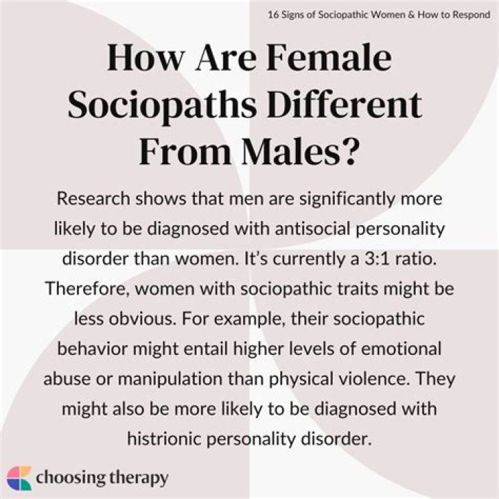 Answer: While both male and female sociopaths share certain traits, such as a lack of empathy and remorse, female sociopaths tend to be more manipulative and emotionally deceptive. They are also more likely to use covert aggression and seduction to achieve their goals.